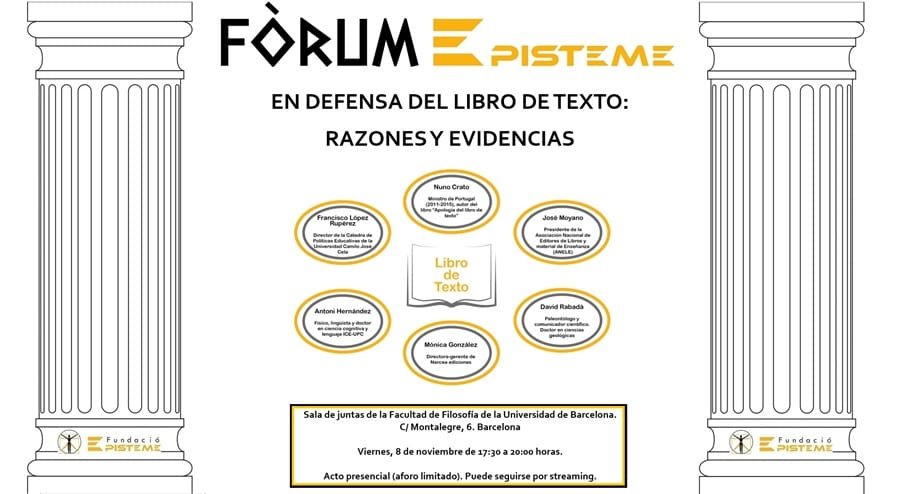 Amb motiu de la recent publicació del llibre Apología del libro de texto (Narcea, 2024), la Fundació Episteme, en coorganització amb Barcelona Institute of Analytic Philosophy (BIAP) de la Universitat de Barcelona, presenta aquest acte amb el seu autor, Nuno Crato (ministre d’Educació de Portugal 2011-2015), així com amb destacats experts: Mònica González (Narcea), Francisco López Rupérez (UCJC), José Moyano (ANELE), Toni Hernández (UPC) i David Rabadà (aspepc·sps).